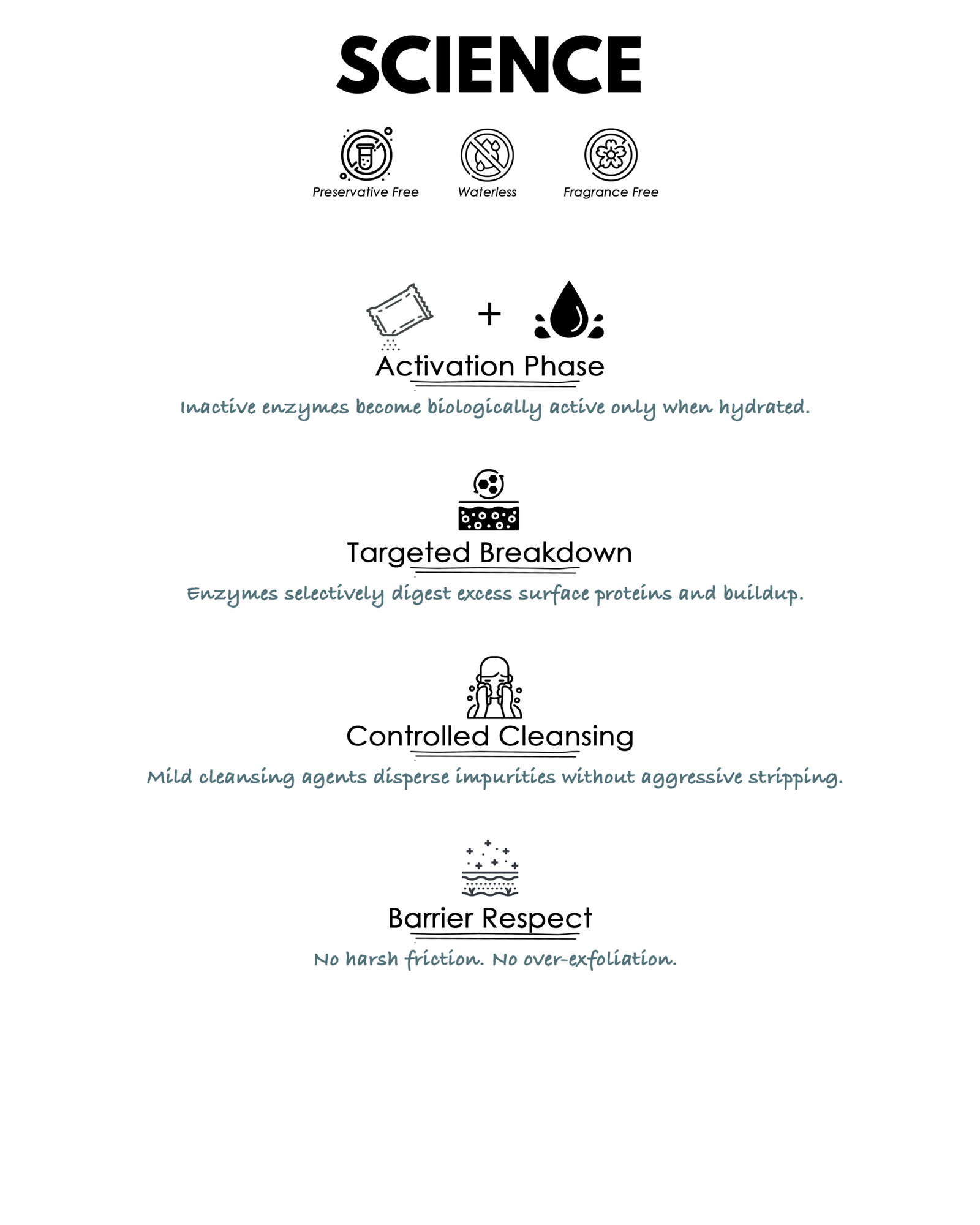 The result is a cleanser that performs at enzymatic efficiency — freshly activated, every single time.